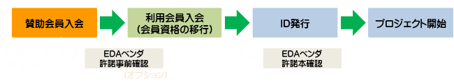 | 手続き | ・賛助会員入会申込書の提出 | ・EDA利用会員入会申込書の提出 ・ツールベンダー毎にソフトウェア使用誓 約書に合意 |