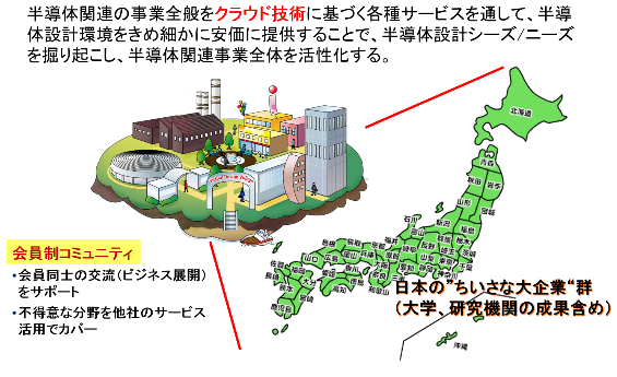 株式会社CDC研究所(CDC研)は、一般社団法人クラウド・デザイン・コミュニティのツール整備についての理念を継承し、これを実現するために設立した株式会社です。 半導体設計を中心にした周辺サービスとのネットワークをクラウド上に実現することで、中小半導体関連企業、個人事業主、大学研究者・指導者や研究機関などが、互いの枠を超えて結集し、”自立(持続)可能な”半導体設計クラウド環境を国内に整備し、最終的には、国内を本拠とした半導体設計関連ビジネスの環境を、世界に対抗しうる日本なりの仕組みで実現するための「環境整備」を使命として発足いたしました。 互いの事業を盛り上げ、実現する場となる、バーチャルな統合企業ライクな環境を提供します。